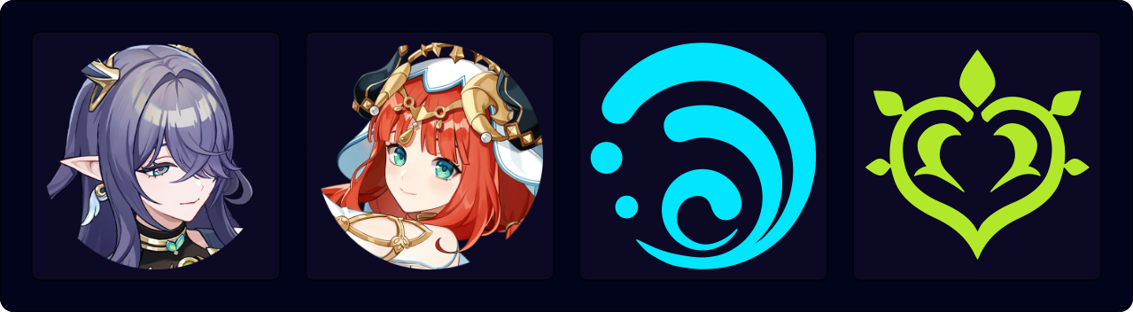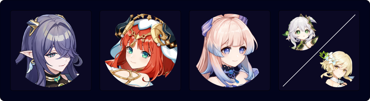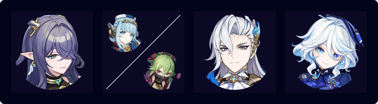 ![]() Furina | Furina provides a partywide Universal DMG% buff, which can be very powerful in teams that put heavy emphasis on other teammates’ Talent damage, in spite of this buff not applying to Lauma’s Lunar-Bloom damage or other Transformative Reactions. Her slower rate of Hydro application will result in more Quicken uptime, resulting in teams with her as a solo Hydro being labeled “Quickbloom” teams. |